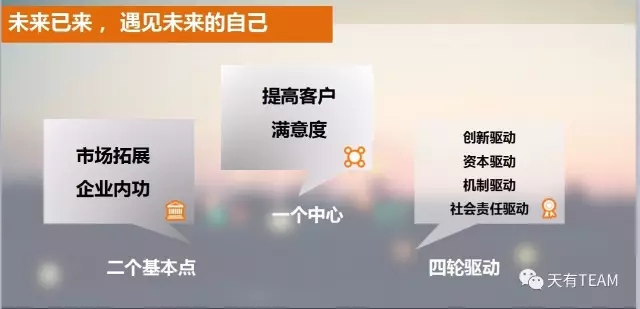 二十年時(shí)光如梭,天有站在新的起點(diǎn),處在新的路口,面臨新的選擇。雖然傳統(tǒng)制造業(yè)處于一片紅海,中國(guó)的實(shí)體經(jīng)濟(jì)如曹德旺抱怨的嚴(yán)峻經(jīng)營(yíng)環(huán)境,外貿(mào)出口受到trump貿(mào)易保護(hù)主義的挑戰(zhàn),但我們要看到全球家居鞋近千億的市場(chǎng)份額,看到全球分工的比較優(yōu)勢(shì),只要我們堅(jiān)持在專注傳統(tǒng)行業(yè)精耕細(xì)作,保持開放創(chuàng)新思維,就一定能夠成為叢林中的能手。我們要堅(jiān)持一個(gè)中心,兩個(gè)基本點(diǎn),四輪驅(qū)動(dòng)。堅(jiān)持把提高客戶的滿意度當(dāng)做是公司的中心,抓市場(chǎng)拓展和練企業(yè)內(nèi)功兩個(gè)基本點(diǎn)。利用四輪驅(qū)動(dòng)----創(chuàng)新驅(qū)動(dòng),機(jī)制驅(qū)動(dòng),資本驅(qū)動(dòng),社會(huì)責(zé)任驅(qū)動(dòng),引領(lǐng)企業(yè)可持續(xù)發(fā)展。